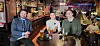 Minervas nyhetsredaktør Alexander Z. Ibsen, stortingsrepresentant for Høyre Anna Molberg og Unge Høyre-leder Ola Svenneby i det første panelet under Minervakveld på Eilefs landhandleri mandag 15. desember.