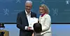 Avkommersialiseringsutvalgets leder Jan-Erik Støstad overleverer utvalgets rapport til digitaliserings- og forvaltningsminister Karianne Tung.