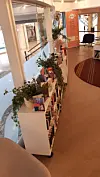 Jeg tok også turen innom Hoveddeichman, en potensiell finkulturell høyborg. Her møtes man av svingdører, summende rulletrapper, kafe og butikk, trivelig, men litt sånn kjøpesenteraktig. Arkitekturen er genuint spennende og noen av bokhyllene så høye at man må strekke seg litt for å nå opp til den øverste litteraturen, et konsept som passer meg fint. Det er nok bøker på Hoveddeichman, faktisk så mange at det kan være krevende å finne frem. Som forfatter av markabøker og quizbøker leter jeg etter noe jeg har skrevet selv og med litt hjelp av datasystemet fant jeg de til sist. Sånt er gøy.