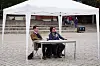 Chase Alexander Jordal og Herman Tinius Lauenborg Winther forsvarer sine konservative standpunkter på Fredrikkeplasen, 9. september.