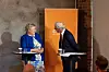 Erna Solberg og Jonas Gahr Støre under Civita-debatten mandag.