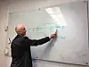 On a board in the meeting room where Sørensen is hosting our meeting, he illustrates what he is trying to explain, and how a component of the virus which previously was situated on another part of the shell of the virus, now has become a part of the spike protein of the virus.