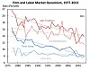Men vi har en rekke indikasjoner på at omstillingen i privat næringsliv går saktere. Figuren er hentet fra en presentasjon av amerikansk økonomi den 16. juni 2016 av Jason Furman, som var sjef for Obamas økonomiske råd (CEA). Dataene er fra USA, der omstillingstakten er høyere enn i Europa. Trenden er ganske klar.