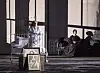 En kvinne i svart sitter foran på scenen og spiller på glassharmonika. En annen kvinne i hvit kjole sitter på en liten scene lenger bak, blodig etter å nettopp ha drept mannen hun ble tvunget til å gifte seg med.