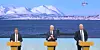 Jonas Gahr Støre, Trygve Slagsvold Vedum og Bjørn Arild Gram legger frem regjeringens plan for å nå toprosentmålet.