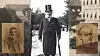 Utsnitt av fotografi av Karl Johans gate i 1898 ved Oscar Hvalbye, og Henrik Ibsen på Karl Johans gate tatt med Carl Størmers kikkehullskamera.
