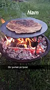 Vi er nå over på en takke som står fast i bål. Fyrer du for hardt, brenner maten. Fyrer du for lite, blir det ikke stekt.