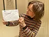 Sanna Sarromaa studerer tegningene hun fikk i posten.