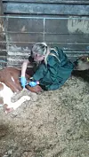 Jeg stod på ene siden i grønn frakk med stetoskop. På den andre stod kjenningen med blikket festet på dyret og konsentrerte seg.