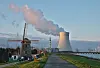 Vindmølle og atomkraftverk i Doel i Belgia.