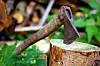 faren som, flankert av sine sønner, møter angriperen på dørstokken med øks i hende.