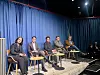 Fra venstre: ordstyrer journalist Sevda Barazesh, statsviter Nima Salimi, kunstner Parichehr Taheri, klimaforsker Nasser Karami og kommunestyrerepresentant i Oslo for Høyre Bjørgulv Vinje Borgundvaag.
