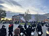 Demonstranter og politi utenfor Ullevål før kampen.