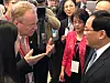 Oslo har mottatt 13 000 ansiktsmasker og 400 beskyttelsesdrakter for helsepersonell fra vennskapsbyen Shanghai. Bildet er fra Raymond Johansens reise til Kina i 2018.