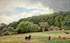 Norsk nasjonalromantikk illustrert av Hans Gude i bildet «Bondegård med beitende kuer».