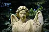 Men så skjedde det, ikke akkurat i de dager, men en dag nylig, at jeg gikk gjennom porten, og altså under engelen: Da hørte jeg granngivelig at den snakket. Jeg stoppet naturligvis, uten akkurat å fryse til is, for så kaldt har det tross alt ikke vært i sommer, men forundret. Og stirret opp på plastfiguren. Nei, den var som før. Men så hørte jeg det på nytt, og denne gang var det ingen tvil. Stemmen kom fra engelen, selv om den ikke akkurat beveget sine stive plastlepper.