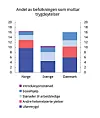 For det tredje har Norge, ifølge den samme stortingsmeldingen, en høyere andel av befolkningen som mottar helserelaterte trygdeytelser i alderen 20-64 år enn både Sverige og Danmark. Samtidig er det ingenting som tyder på at helsetilstanden i Norge er dårligere enn i andre land. Det er en nesten like stor andel nordmenn som mottar uføretrygd, som det er svensker som mottar trygdeytelser totalt, og det er uten at mottakere av sykepenger og alderspensjon er inkludert.